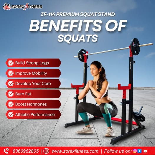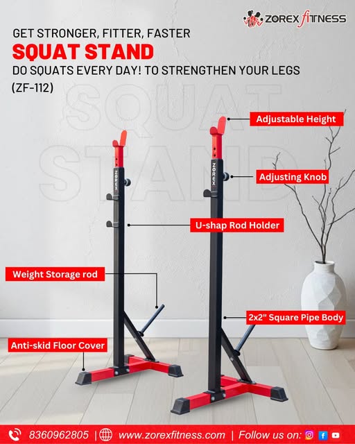 Ans: Squat stands are adjustable supports used during exercises like squats, bench press, and overhead lifts. Zorex Fitness squat stands offer unmatched power, solid stability, and versatile usage — perfect for both home gyms and commercial setups.